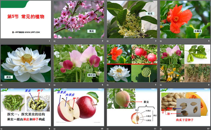 课前活动:请将桌子上的毛豆荚、花生、南瓜子、葵花籽、板栗、松子、白果、桂圆分成2组,一组为果实,一组为种子。