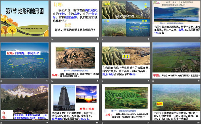 地形和地形图PPT,第二部分内容:地形的五种类型