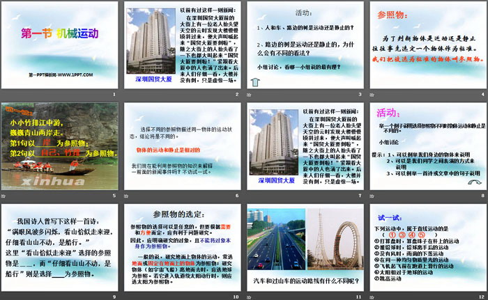机械运动PPT,第二部分内容:参照物的选定: