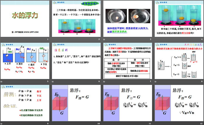 水的浮力PPT,第二部分内容:物体浮沉的条件