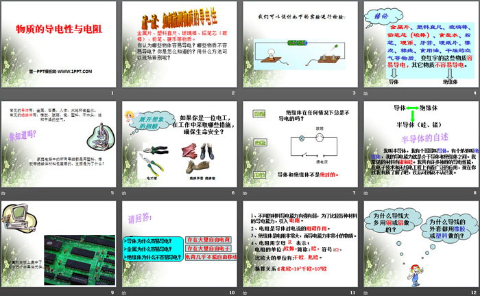 关键词:浙教版八年级上册科学PPT课件免费下载,物质的导电性与电阻PPT下载,.PPT格式;