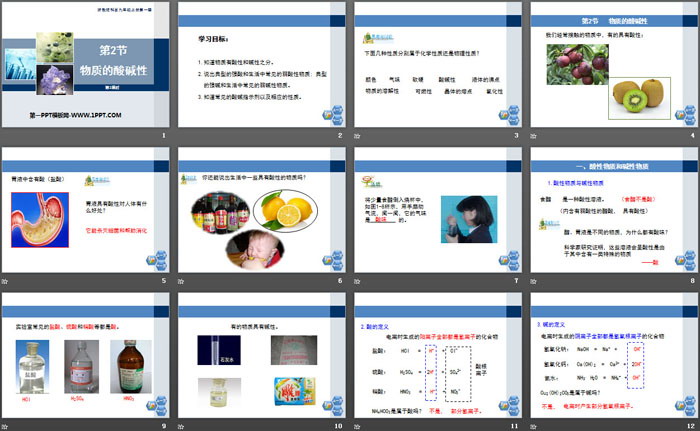 物质的酸碱性,第二部分内容:酸性物质和碱性物质