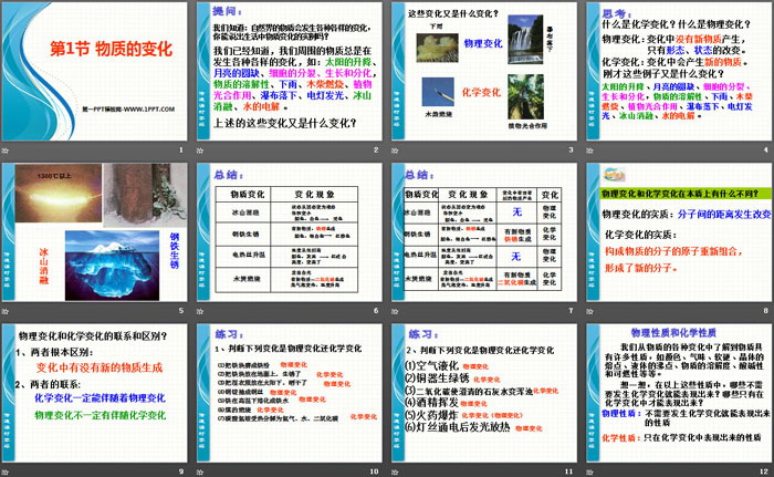 关键词:浙教版九年级上册科学PPT课件免费下载,物质的变化PPT下载,.PPT格式;