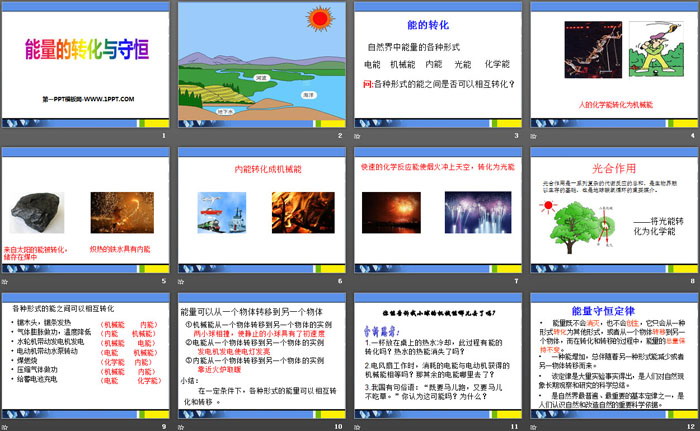 关键词:浙教版九年级上册科学PPT课件免费下载,能量的转化与守恒PPT下载,.PPT格式;