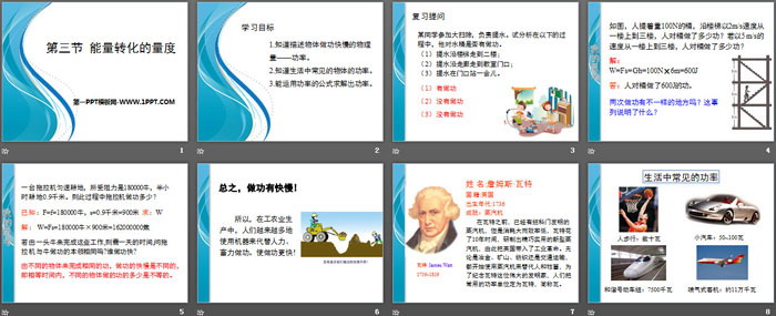 关键词:浙教版九年级上册科学PPT课件免费下载,能量转化的量度PPT下载,.PPT格式;