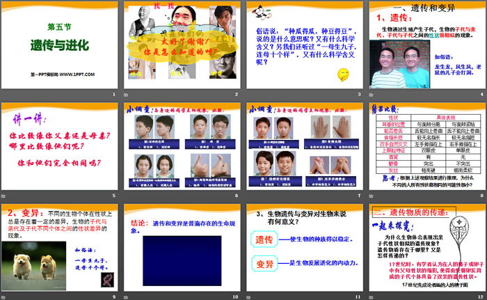 关键词:浙教版九年级下册科学PPT课件免费下载,遗传与进化PPT下载,.PPT格式;