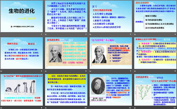 关键词:浙教版九年级下册科学PPT课件免费下载,生物的进化PPT下载,.PPT格式;