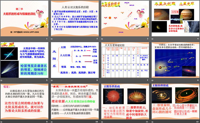 关键词:浙教版九年级下册科学PPT课件免费下载,太阳系的形成和恒星的演化PPT下载,.PPT格式;