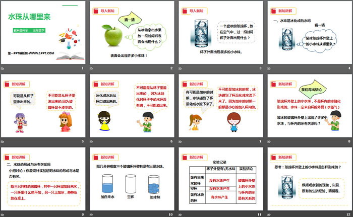 关键词:教科版三年级下册语文PPT课件免费下载,水珠从哪里来PPT下载,温度和水的变化PPT下载,.PPT格式;
