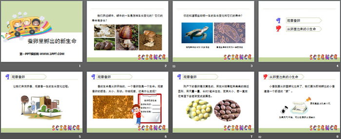 关键词:教科版三年级下册语文PPT课件免费下载,蚕卵里孵出的新生命PPT下载,动物的生命周期PPT下载,.PPT格式;