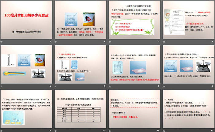 关键词:教科版四年级上册语文PPT课件免费下载,100毫升水能溶解多少克食盐PPT下载,溶解PPT下载,.PPT格式;