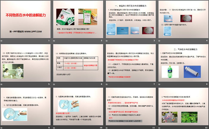第一部分内容:食盐和小苏打在水中的溶解能力