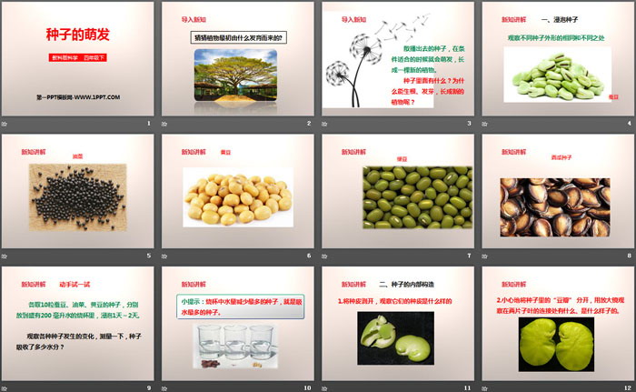 关键词:教科版四年级下册语文PPT课件免费下载,种子的萌发PPT下载,新的生命PPT下载,.PPT格式;