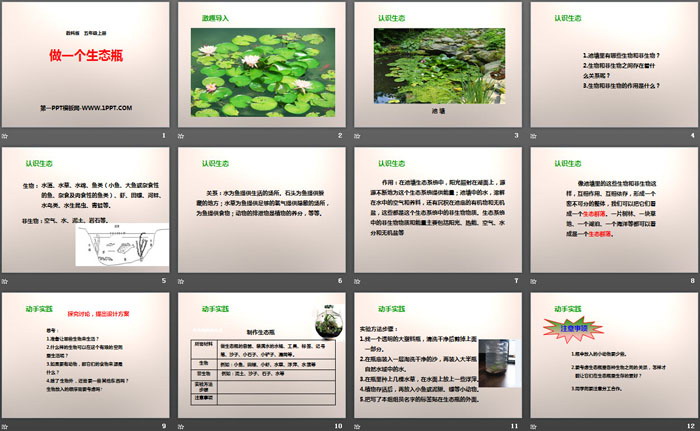 关键词:教科版五年级上册语文PPT课件免费下载,做一个生态瓶PPT下载,生物与环境PPT下载,.PPT格式;