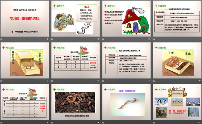 关键词:教科版五年级上册语文PPT课件免费下载,蚯蚓的选择PPT下载,生物与环境PPT下载,.PPT格式;