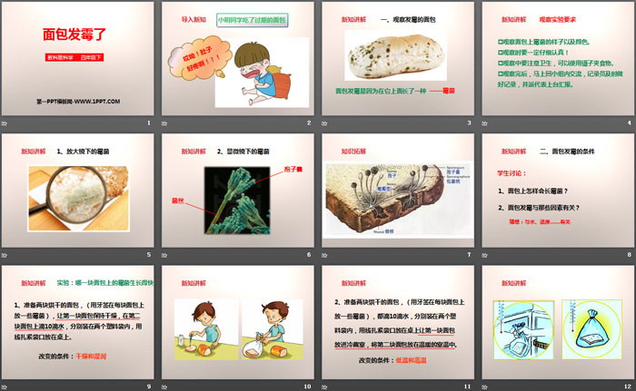 关键词:教科版四年级下册语文PPT课件免费下载,面包发霉了PPT下载,食物PPT下载,.PPT格式;