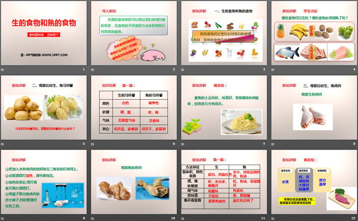 关键词:教科版四年级下册语文PPT课件免费下载,生的食物和熟的食物PPT下载,食物PPT下载,.PPT格式;