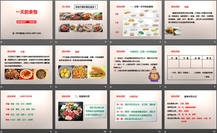 关键词:教科版四年级下册语文PPT课件免费下载,一天的食物PPT下载,食物PPT下载,.PPT格式;