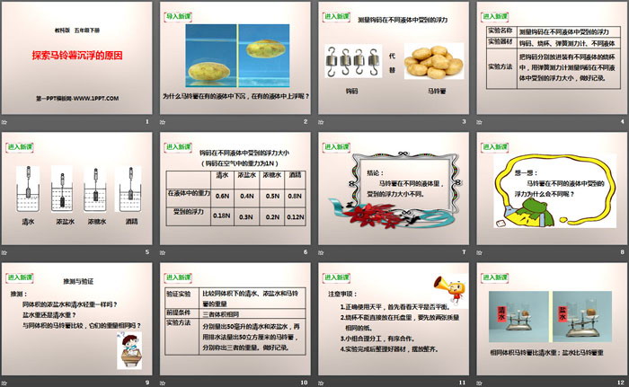 关键词:教科版五年级下册语文PPT课件免费下载,探索马铃薯沉浮的原因PPT下载,沉和浮PPT下载,.PPT格式;