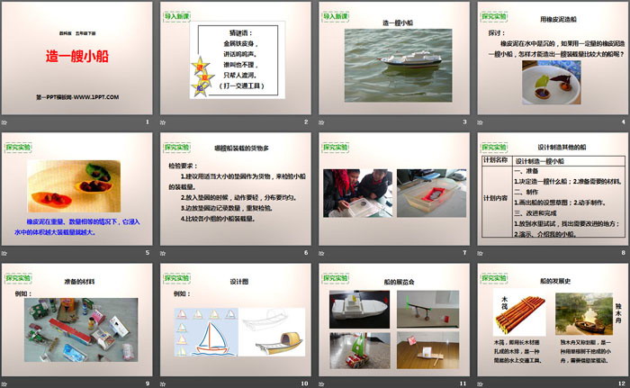 关键词:教科版五年级下册语文PPT课件免费下载,造一艘小船PPT下载,沉和浮PPT下载,.PPT格式;