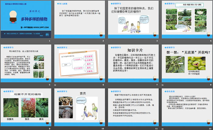 关键词:教科版六年级上册语文PPT课件免费下载,多种多样的植物PPT下载,生物的多样性PPT下载,.PPT格式;