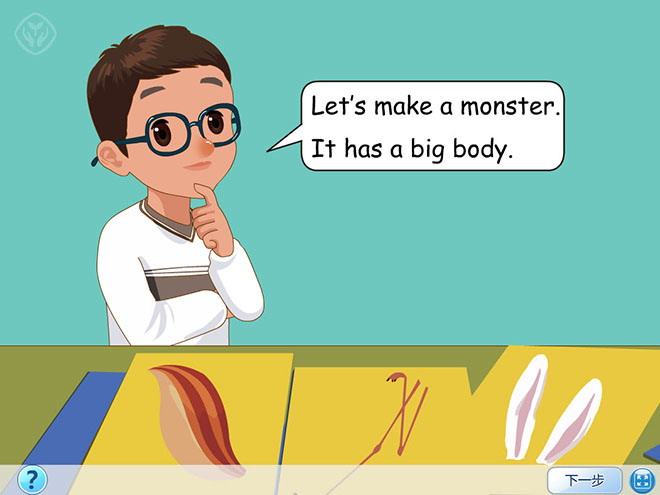 本课件通过动画的形式将《At the zoo》中的Make a monster展示给学生,形象生动,趣味性强,是很好的英语教学辅助课件。