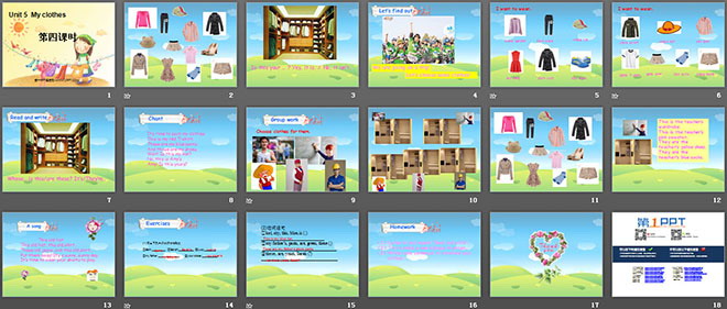 关键词:《My clothes》课件,新人教版四年级下册英语PPT课件,四年级英语幻灯片课件下载,《My clothes》PPT课件下载,.ppt格式