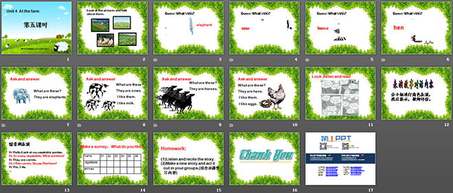 关键词:《At the farm》课件,新人教版四年级下册英语PPT课件,四年级英语幻灯片课件下载,《At the farm》PPT课件下载,.ppt格式
