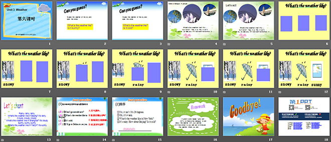 关键词:《Weather》课件,新人教版四年级下册英语PPT课件,四年级英语幻灯片课件下载,《Weather》PPT课件下载,.ppt格式