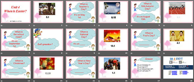 关键词:《When is Easter?》课件,新人教版五年级下册英语PPT课件,五年级英语幻灯片课件下载,《When is Easter?》PPT课件下载,.ppt格式