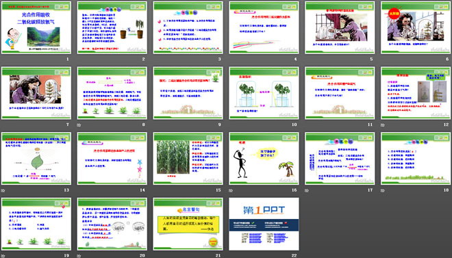 关键词:绿色植物与生物圈中碳-氧平衡教学课件,光合作用吸收二氧化碳释放氧气教学课件,人教版七年级上册生物PPT课件下载,七年级生物幻灯片课件下载,绿色植物与生物圈中碳-氧平衡PPT课件下载,光合作用吸收二氧化碳释放氧气PPT课件下载,.PPT格式;