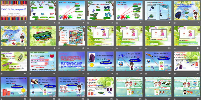 关键词:《Is this your pencil?》教学课件,人教版七年级上册英语课件,七年级英语幻灯片课件下载,《Is this your pencil?》PPT课件下载,.ppt格式