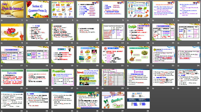 关键词:《Do you like bananas?》教学课件,人教版七年级上册英语课件,七年级英语幻灯片课件下载,《Do you like bananas?》PPT课件下载,.ppt格式