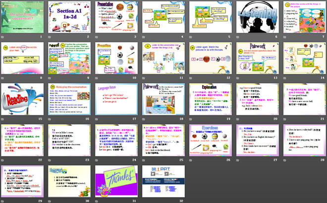 关键词:《Do you have a soccer ball?》教学课件,人教版七年级上册英语课件,七年级英语幻灯片课件下载,《Do you have a soccer ball?》PPT课件下载,.ppt格式