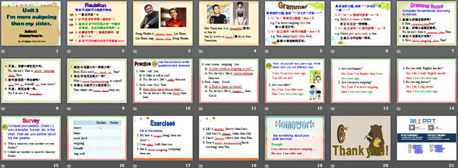 关键词:《I'm more outgoing than my sister》教学课件,人教版八年级上册英语课件,八年级英语幻灯片课件下载,《I'm more outgoing than my sister》PPT课件下载,.ppt格式