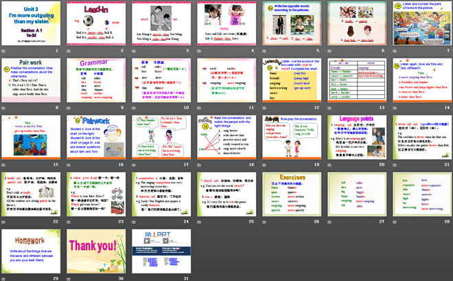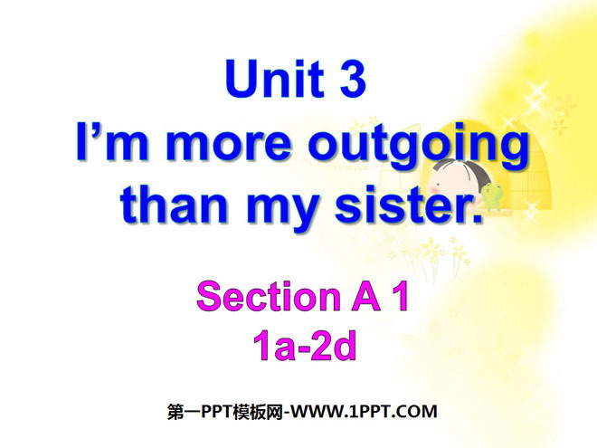 关键词:《I'm more outgoing than my sister》教学课件,人教版八年级上册英语课件,八年级英语幻灯片课件下载,《I'm more outgoing than my sister》PPT课件下载,.ppt格式