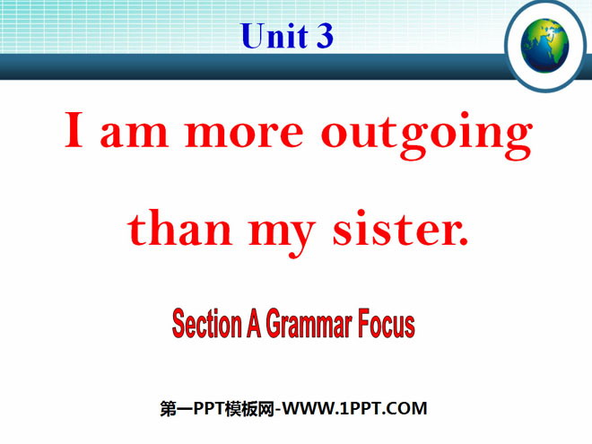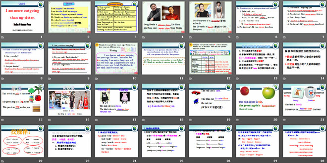 关键词:《I'm more outgoing than my sister》教学课件,人教版八年级上册英语课件,八年级英语幻灯片课件下载,《I'm more outgoing than my sister》PPT课件下载,.ppt格式