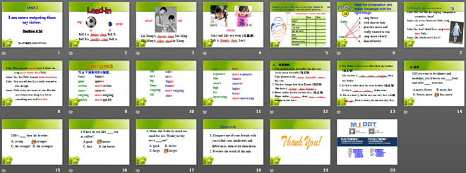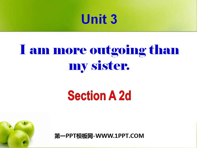 关键词:《I'm more outgoing than my sister》教学课件,人教版八年级上册英语课件,八年级英语幻灯片课件下载,《I'm more outgoing than my sister》PPT课件下载,.ppt格式