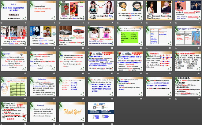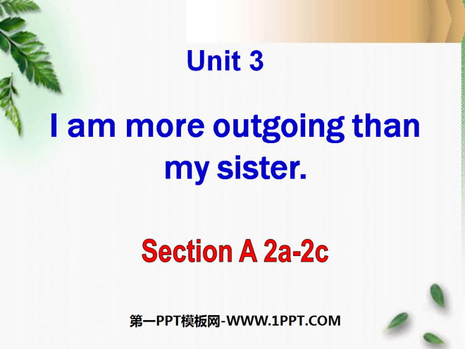 关键词:《I'm more outgoing than my sister》教学课件,人教版八年级上册英语课件,八年级英语幻灯片课件下载,《I'm more outgoing than my sister》PPT课件下载,.ppt格式