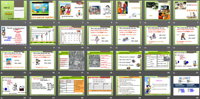关键词:《How often do you exercise?》教学课件,人教版八年级上册英语课件,八年级英语幻灯片课件下载,《How often do you exercise?》PPT课件下载,.ppt格式