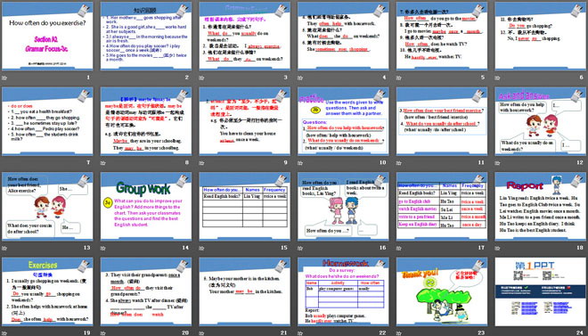 关键词:《How often do you exercise?》教学课件,人教版八年级上册英语课件,八年级英语幻灯片课件下载,《How often do you exercise?》PPT课件下载,.ppt格式