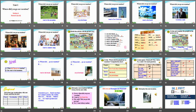 关键词:《Where did you go on vacation?》教学课件,人教版八年级上册英语课件,八年级英语幻灯片课件下载,《Where did you go on vacation?》PPT课件下载,.ppt格式
