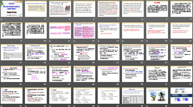 关键词:《Do you want to watch a game show》教学课件,人教版八年级上册英语课件,八年级英语幻灯片课件下载,《Do you want to watch a game show》PPT课件下载,.ppt格式