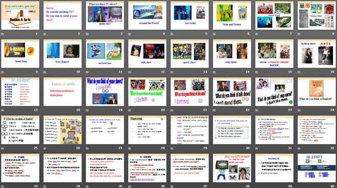 关键词:《Do you want to watch a game show》教学课件,人教版八年级上册英语课件,八年级英语幻灯片课件下载,《Do you want to watch a game show》PPT课件下载,.ppt格式