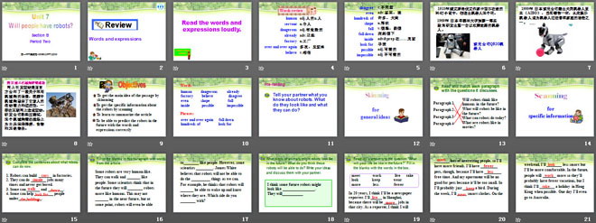 关键词:《Will people have robots?》教学课件,人教版八年级上册英语课件,八年级英语幻灯片课件下载,《Will people have robots?》PPT课件下载,.ppt格式