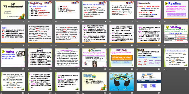 关键词:《Will people have robots?》教学课件,人教版八年级上册英语课件,八年级英语幻灯片课件下载,《Will people have robots?》PPT课件下载,.ppt格式
