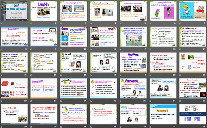 关键词:《Will people have robots?》教学课件,人教版八年级上册英语课件,八年级英语幻灯片课件下载,《Will people have robots?》PPT课件下载,.ppt格式