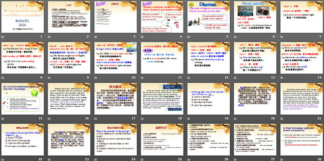熟练掌握并能正确运用以下词汇:expert, keep . . . to oneself, teenager, normal, unless, certainly, wallet, worried, mile, angry, in the end, understanding, careless, mistake, himself, advise, solve, experience, in half, halfway.