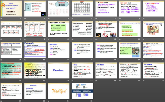 关键词:《Can you come to my party?》教学课件,人教版八年级上册英语课件,八年级英语幻灯片课件下载,《Can you come to my party?》PPT课件下载,.ppt格式