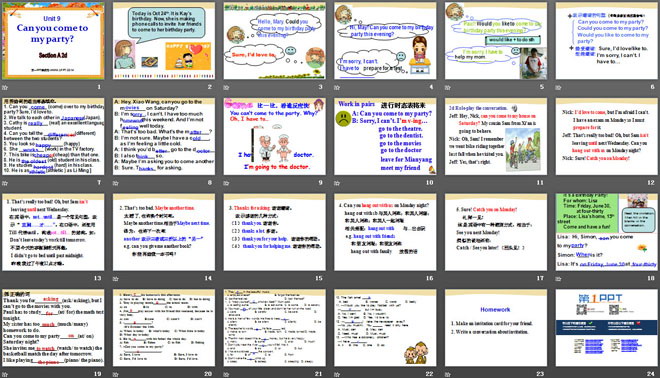 关键词:《Can you come to my party?》教学课件,人教版八年级上册英语课件,八年级英语幻灯片课件下载,《Can you come to my party?》PPT课件下载,.ppt格式